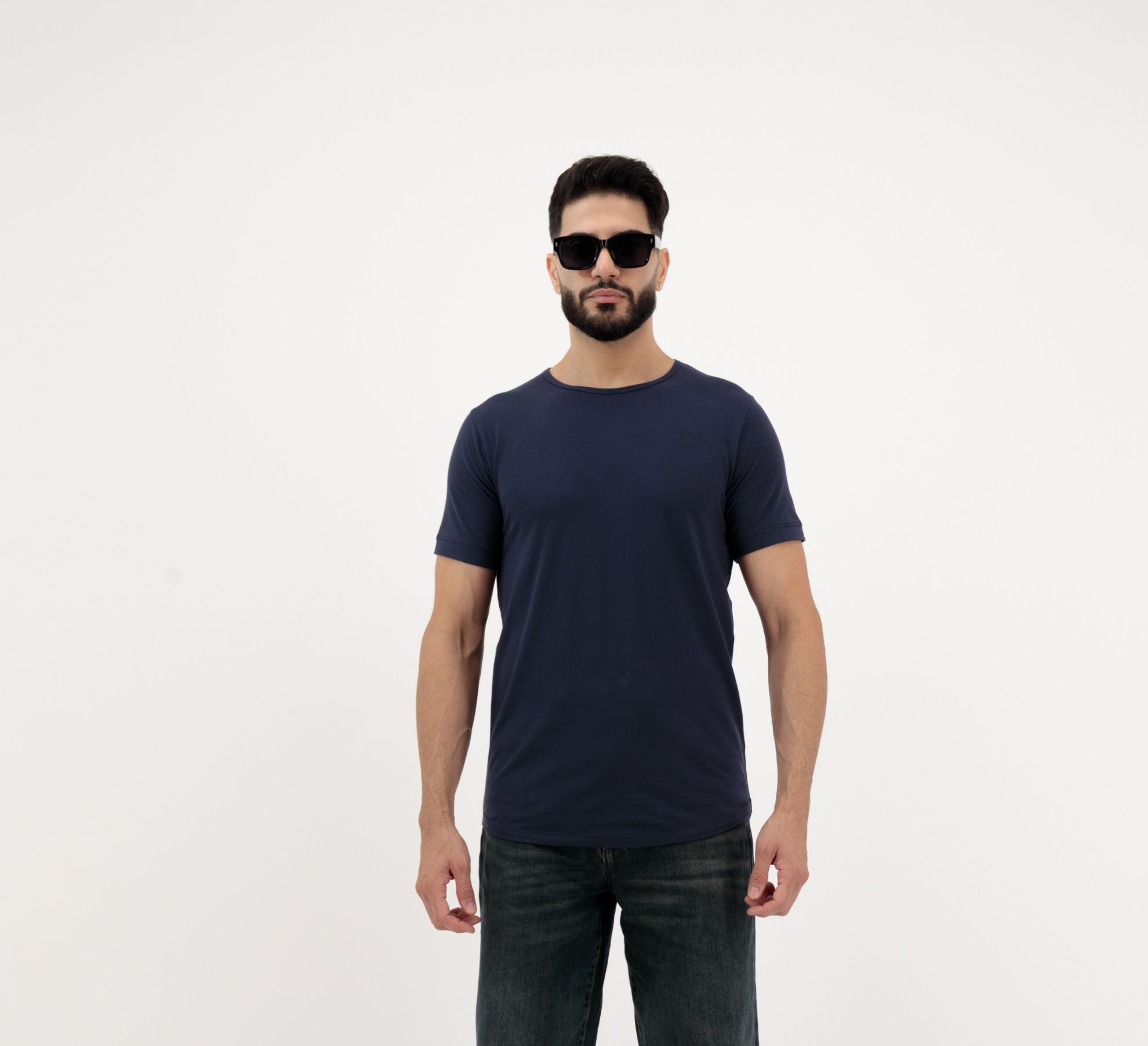 Crafted from 100% premium, soft-touch cotton, this t-shirt feels incredible against your skin from the moment you put it on. The timeless crew neck design and rich navy blue color provide a sophisticated yet understated look. Available in a full range of sizes from S to XXL, it features a modern, tailored fit that complements your physique without feeling restrictive. The durable, high-quality fabric ensures it maintains its shape and deep color, wash after wash.
